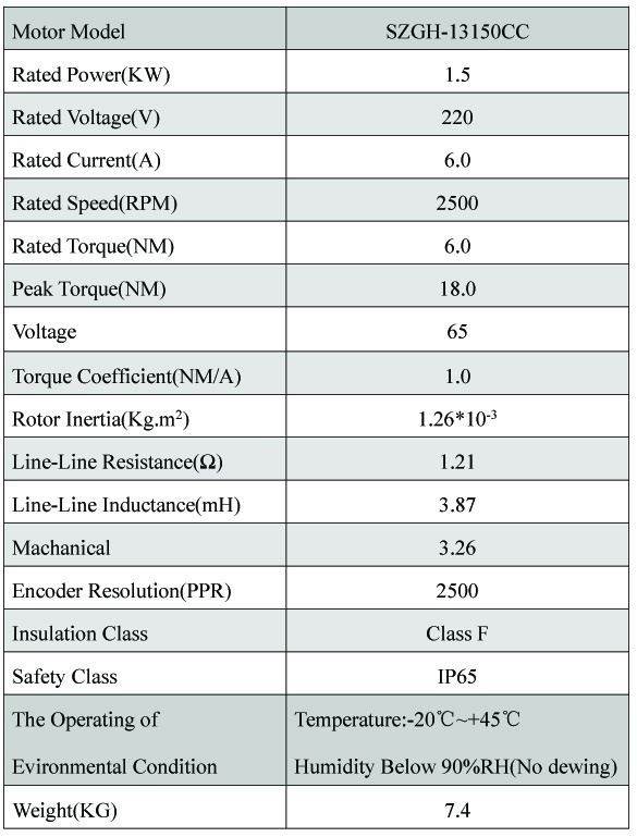GH-13150CC is 1500W 6NN 2500RPM, AC servo motor, middle inertia , high rotation speed, with extremely high performance price ratio and use reliability .